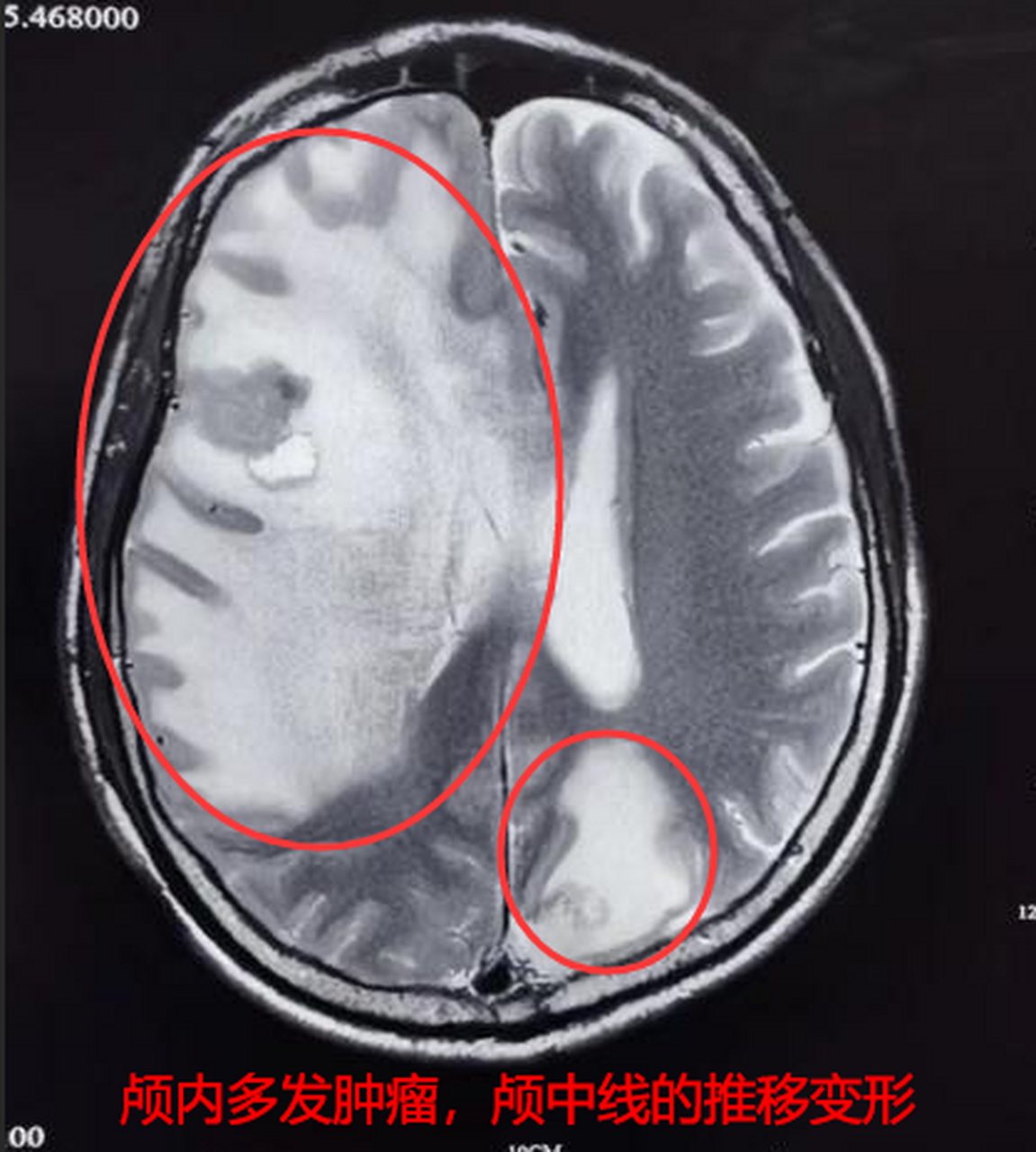 7天后:头晕、头皮皮疹症状出现,但脑部核磁共振显示无进一步扩张。